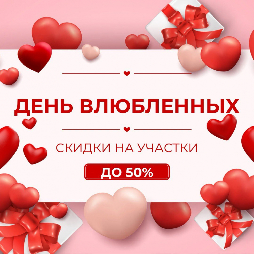 К 14 февраля мы подготовили специальные условия на покупку земельных участков в Московской области. В рамках акции действуют скидки до 50% на участки для жизни, отдыха, инвестиций и бизнеса.