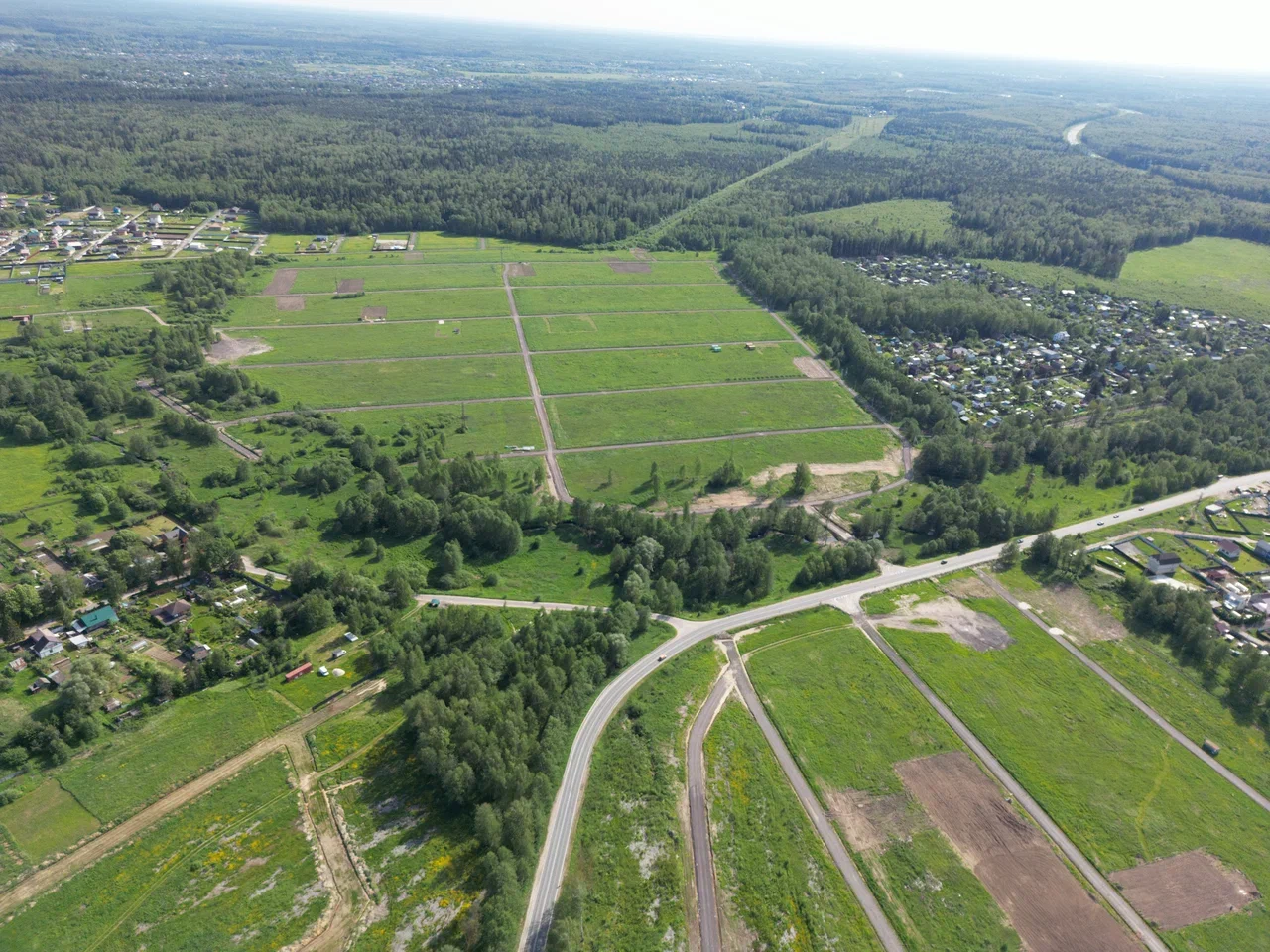 Официальный съезд с трассы в середине участка. Еще два съезда к жилой застройке по краям участка.